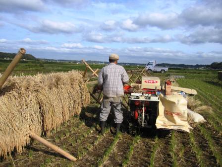 大急ぎで稲たちを脱穀(だっこく)しました。