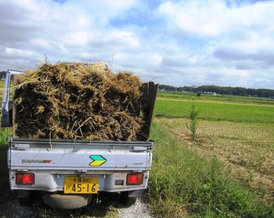 台風が来るので大急ぎで脱穀した稲たち。