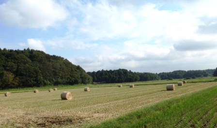 近所の牛屋さんが田んぼのワラを集めてます。