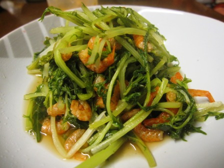 水菜と桜エビの煮浸し with ナンプラー